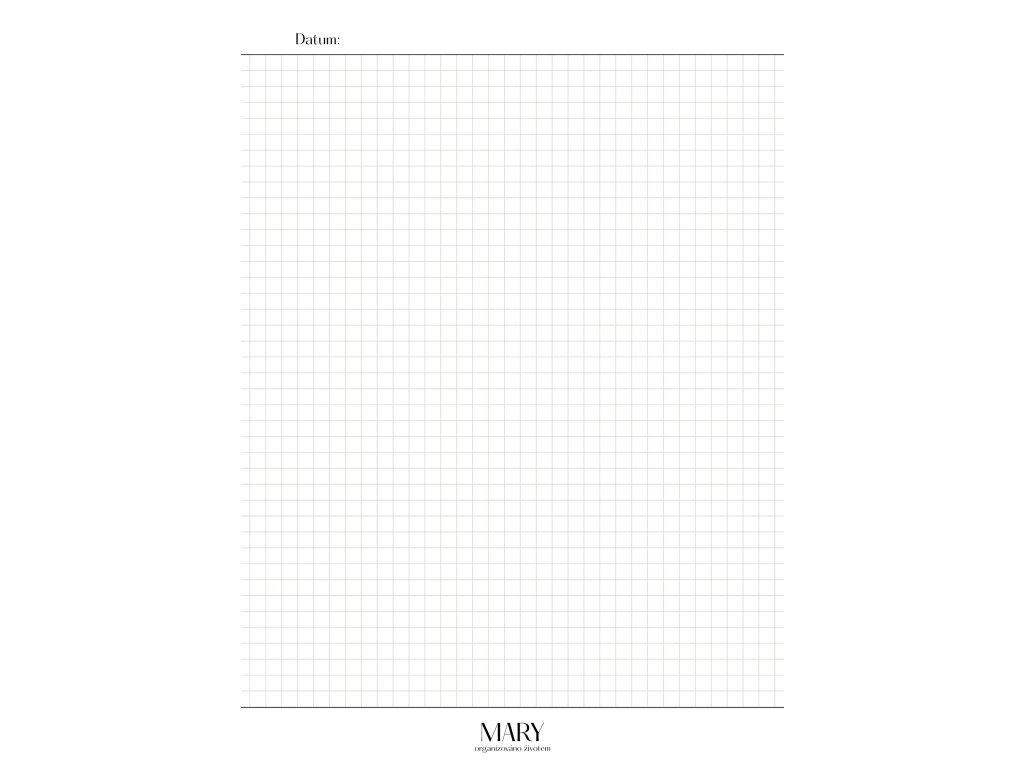 Díky čistému designu a promyšlenému formátu nabízí prostor pro strukturované plánování i volné psaní. Čtverečkovaná síť pomáhá udržet přehled, zatímco otevřený prostor nechává místo pro vlastní systém organizace.